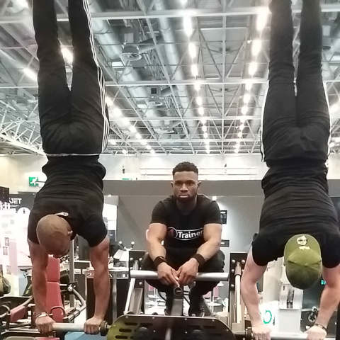 Mistrzowie promują w ten sposób na targach aktywność fizyczną, swoim przykładem inspirując wiele osób do uprawiania sportu.