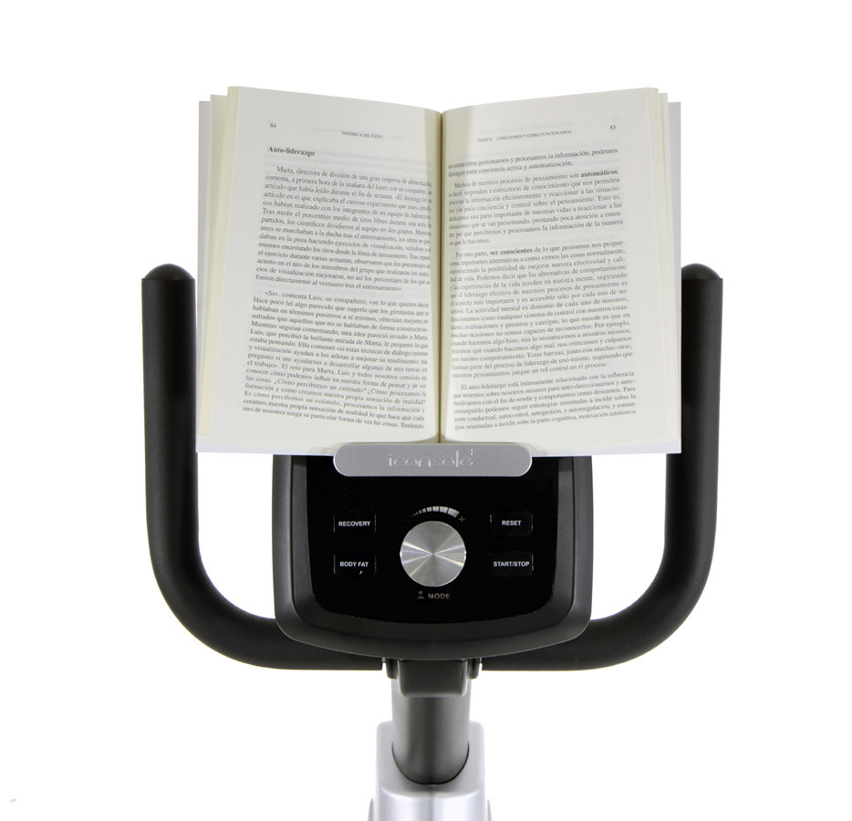 Dodatkowo zarezerwowano cztery programy na ustawienia użytkownika. Licznik wyposażony w czytelny wyświetlacz LCD pozwala na bieżąco śledzić ilość spalonych kalorii, czas treningu, przebyty dystans, liczbę obrotów korbami na minutę – dodatkowo pokazywane są także wskazania pomiaru wartości Recovery, tkanki tłuszczowej i tętno użytkownika. Sensowy pulsometru umieszczono w kierownicy roweru.