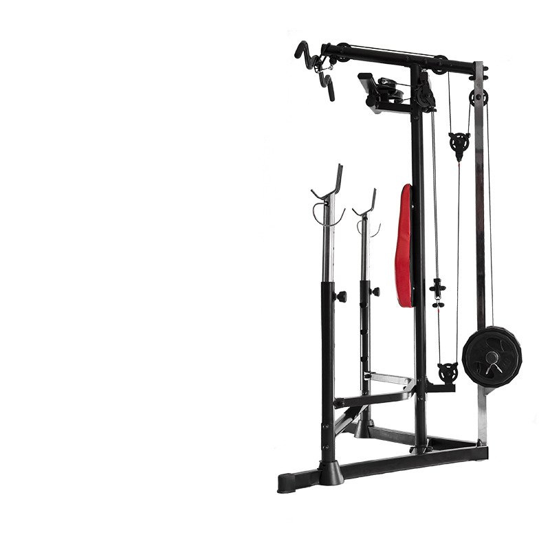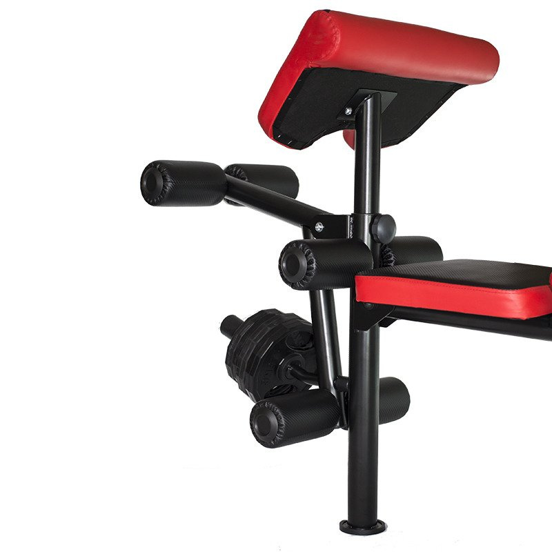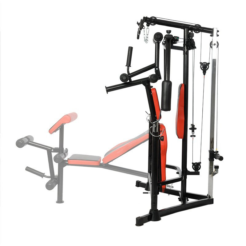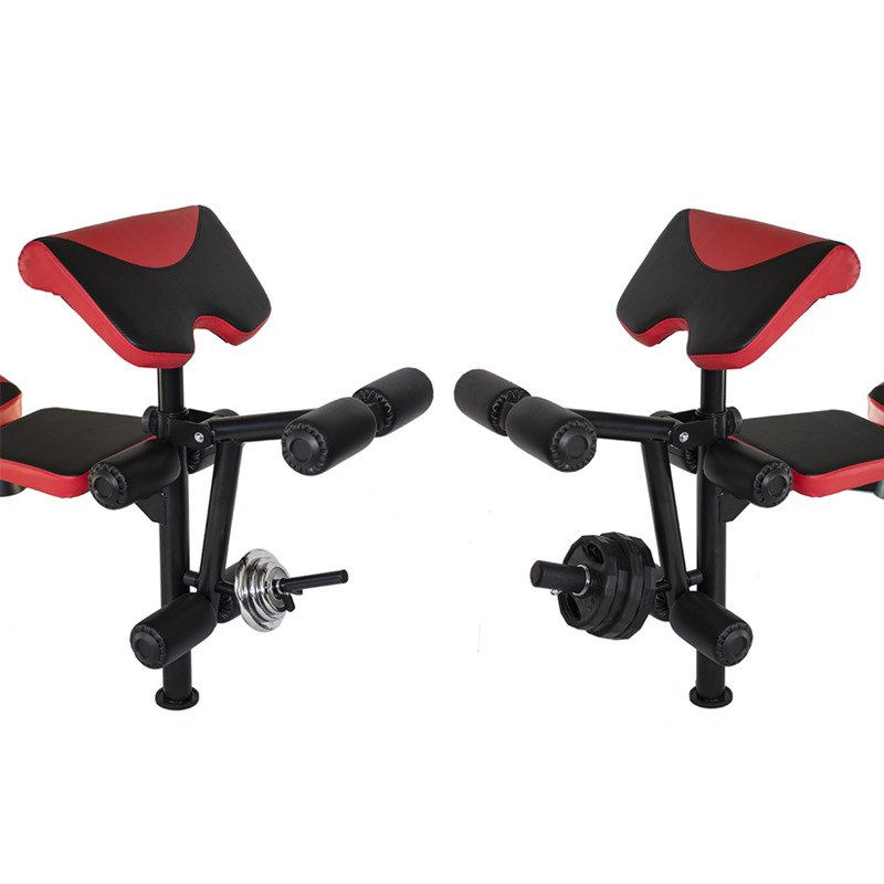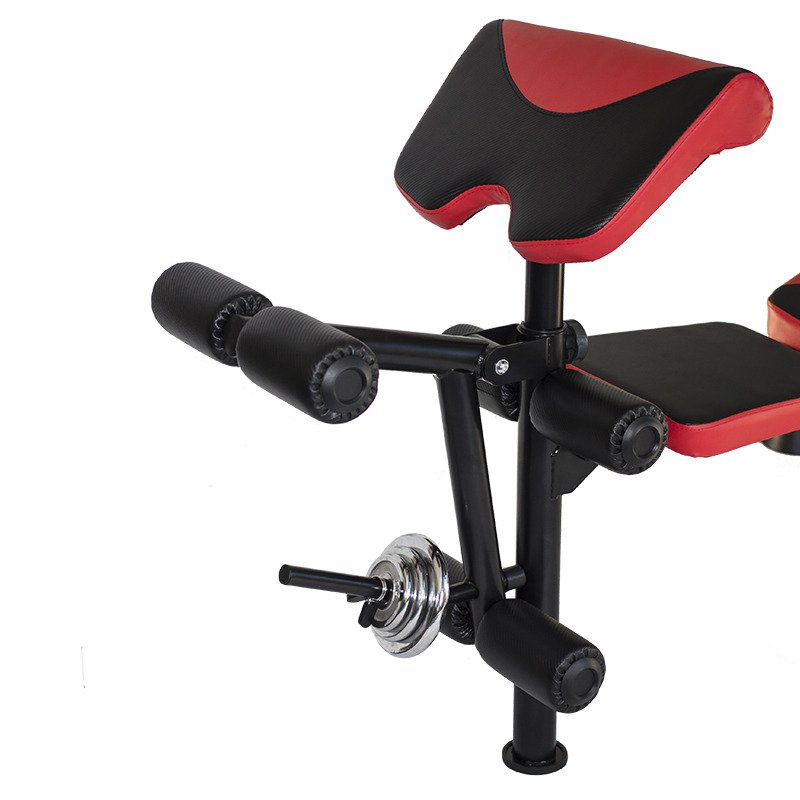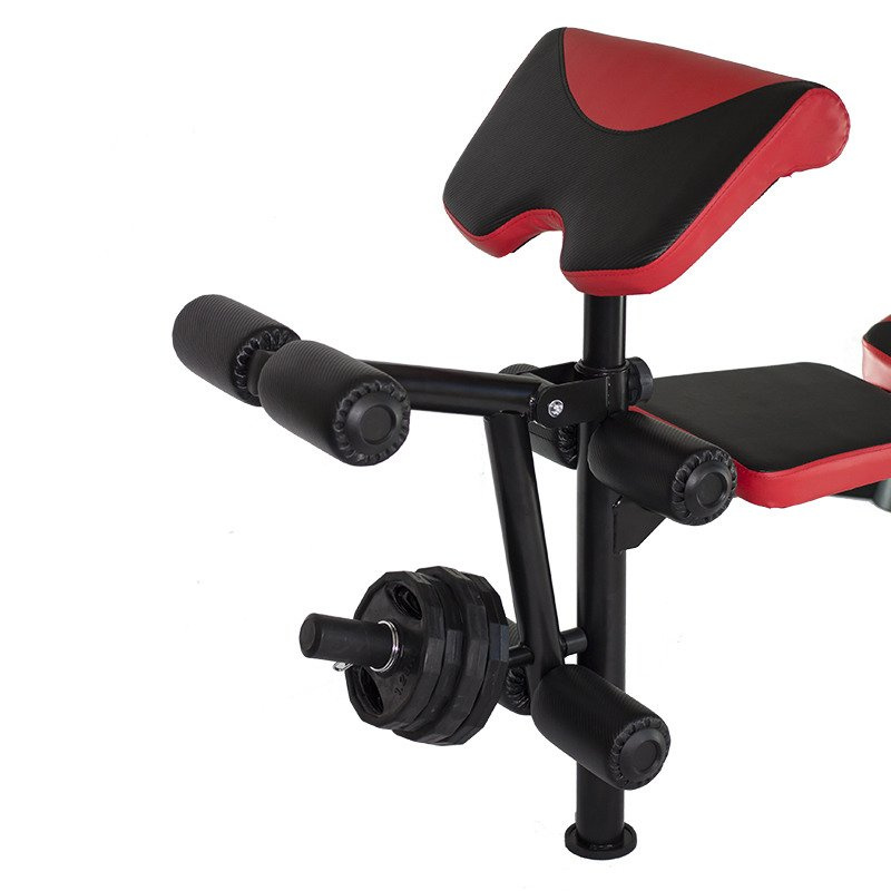 - Dołączonym do zestawu modlitewnikiem, prasą do nóg, rozpiętkami i górnym wyciągiem