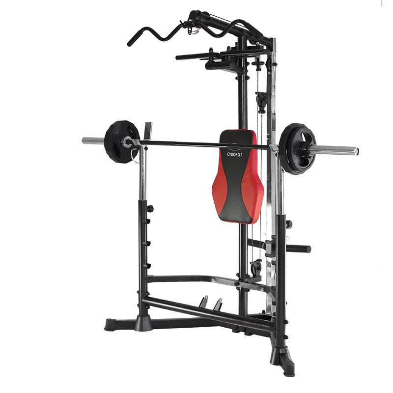 Brama HMS Cyborg 1 umożliwia wyciskanie na ławeczce w pozycji siedzącej i leżącej, wykonywanie motylków, ćwiczenie mięśni nóg oraz pracę z modlitewnikiem i wyciągiem. Atlas bez obciążeń waży zaledwie 96 kilogramów – na stojakach zamontować można 150 kilogramów obciążenia, na prasie do nóg – 45 kilogramów, a na modlitewniku – 60 kilogramów. Maksymalna waga użytkownika – 135 kilogramów.