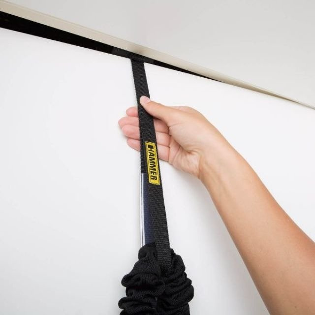 Kotwa HAMMER Door Fixator pozwala przekształcić dowolny pokój w stacje do ćwiczeń. Ta kotwa może być przymocowana do dowolnych drzwi w kilka sekund i oferuje bardzo zróżnicowany mobilny trening.
