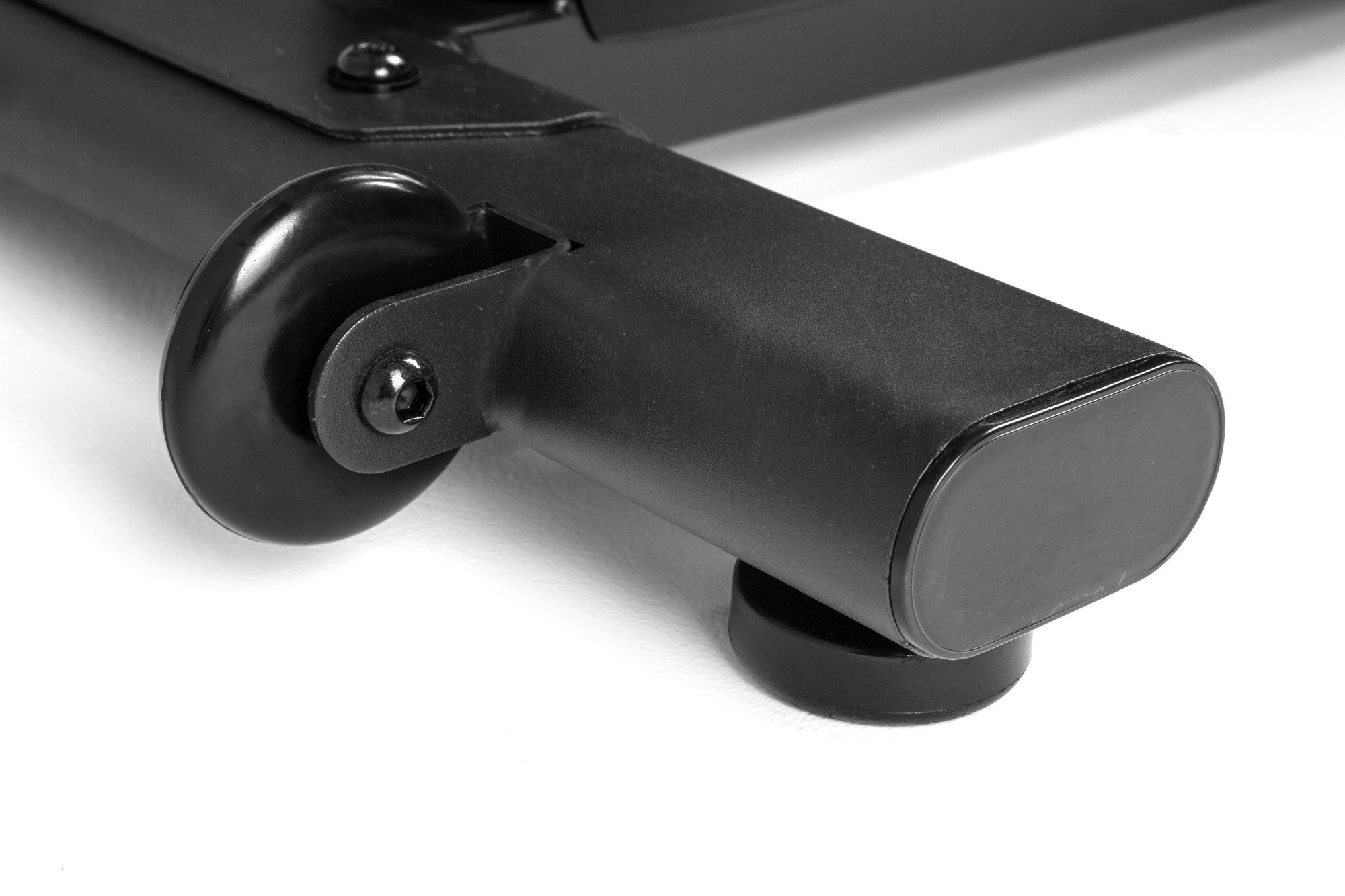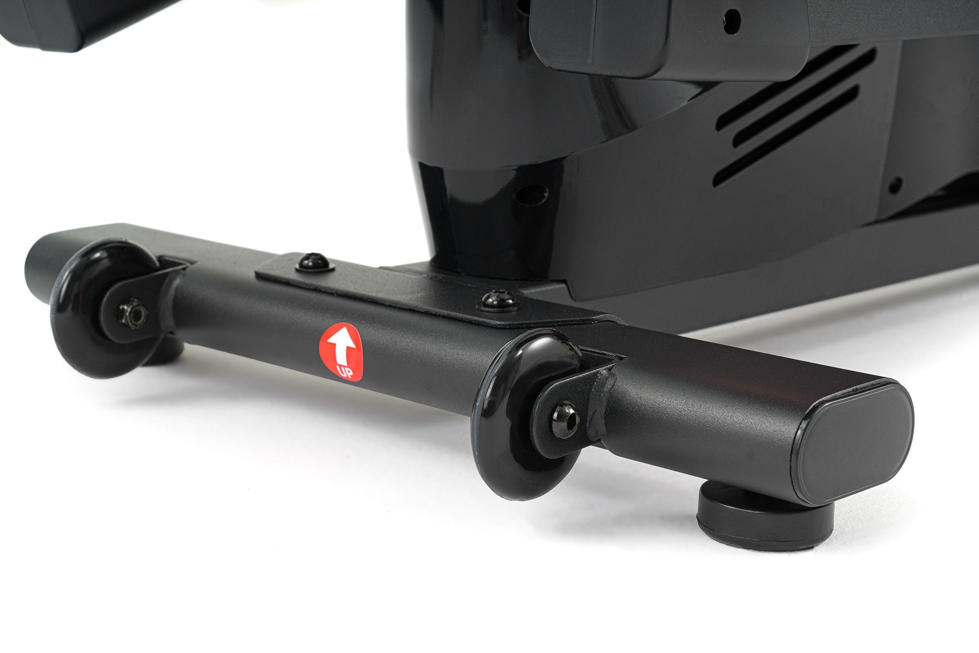 Po skończonej jeździe nie musisz martwić się o to, że Twój salon będzie nadal przypominać w siłownię - wygodnie przemieścisz trenażer w dowolne miejsce, np. za szafę, gdyż praktyczne rolki transportowe ułatwiają przesuwanie sprzętu. Nie szukaj więc wymówek, lepiej zacznij działać!