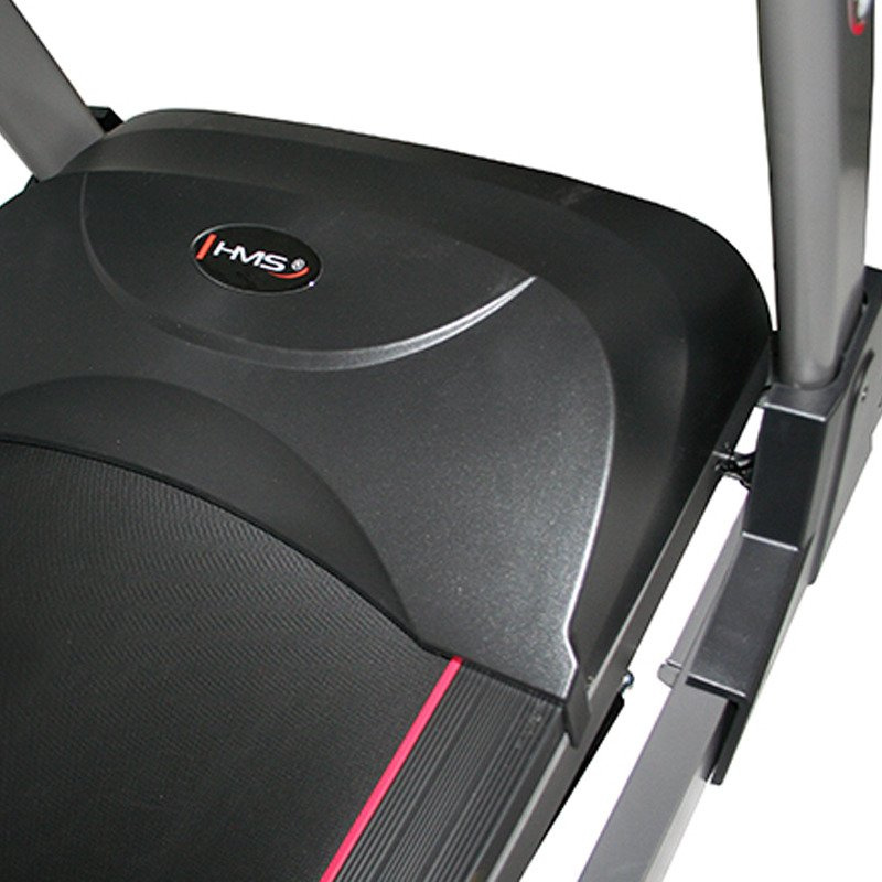 Bieżnia Elektryczna HMS BE8535 jest masywnym, stabilnym urządzeniem przystosowanym do prowadzenia intensywnego treningu w warunkach domowych. Duży pas biegowy zapewniający komfortową przestrzeń do ćwiczeń amortyzuje 4 elastomery i 2 gumowe amortyzatory, które gwarantują lekkość i sprężystość biegu. Przestronny pulpit sterujący z dużym wyświetlaczem komputera pozwala na wygodne zarządzanie ustawieniami, szczególnie przydatne okazują się przyciski szybkiego wyboru programów prędkości i kąta nachylenia. Komputer posiada 99 programów oraz dotykowy ekran. Bieżnię HMS BE 8535 charakteryzuje szeroki zakres regulacji kąta nachylenia pasa biegowego oraz prędkości, które otwierają dostęp do bardzo wszechstronnego treningu. Dzięki możliwości podłączenia mp3, USB oraz karty SD i wbudowanym głośnikom trening może odbywać się przy dźwiękach muzyki sprzyjającej zachowaniu rytmu i płynności ćwiczeń. System łatwego składania pozwala na dużą oszczędność miejsca. Dla zwiększenia bezpieczeństwa przy rozkładaniu bieżni przed treningiem zamontowano 2 dodatkowe siłowniki spowalniające opuszczanie bieżni.