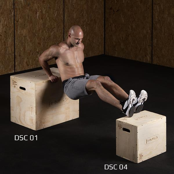 DSC01 HMS to drewniana skrzynia plyometryczna do ćwiczeń, która idealnie nadaje się do treningu funkcjonalnego. Trening ten daje niesamowite efekty przy wykorzystaniu akcesoriów takich jak liny, ciężarki czy pudła plyometryczne.