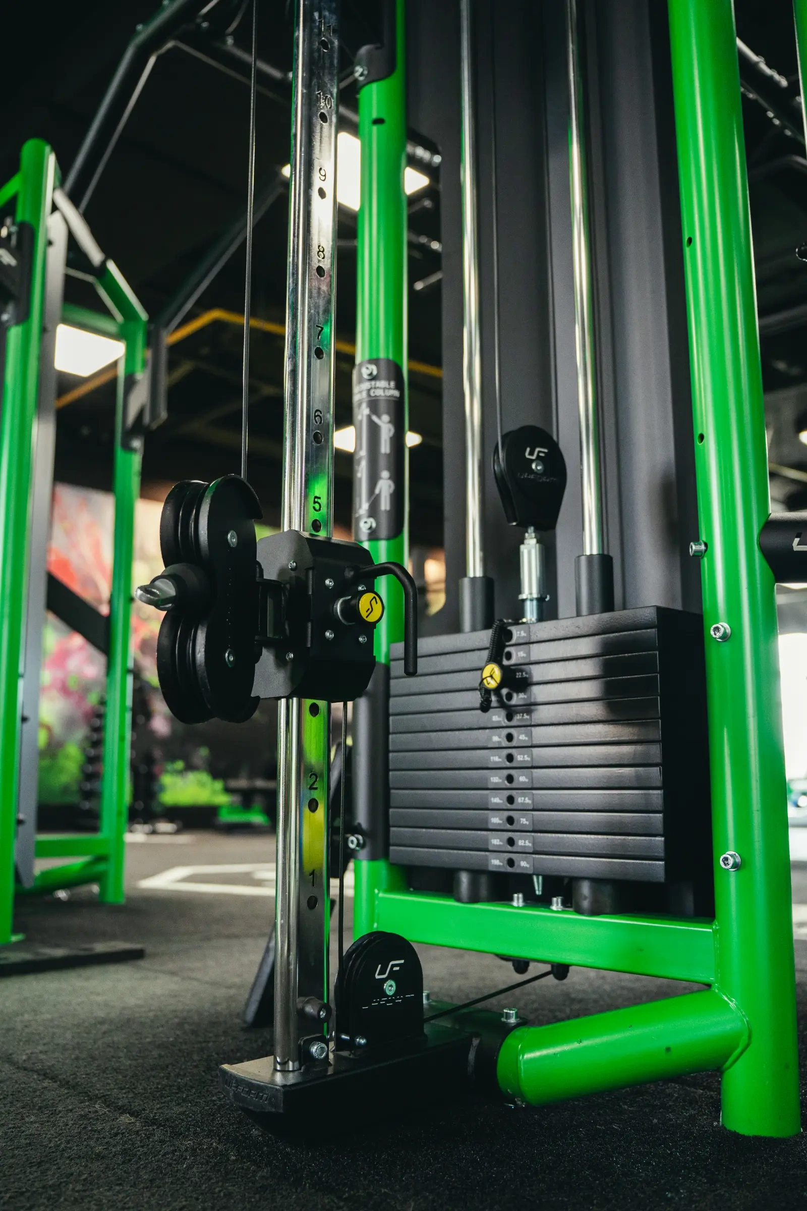 Stację bramową UF-001 wyposażyliśmy w system regulacji położenia rączek, co pozwala na wykonanie dużo większej ilości ćwiczeń niż na maszynie o tradycyjnej konstrukcji.