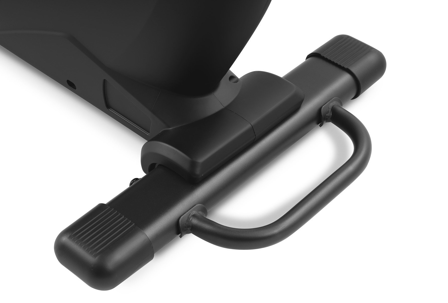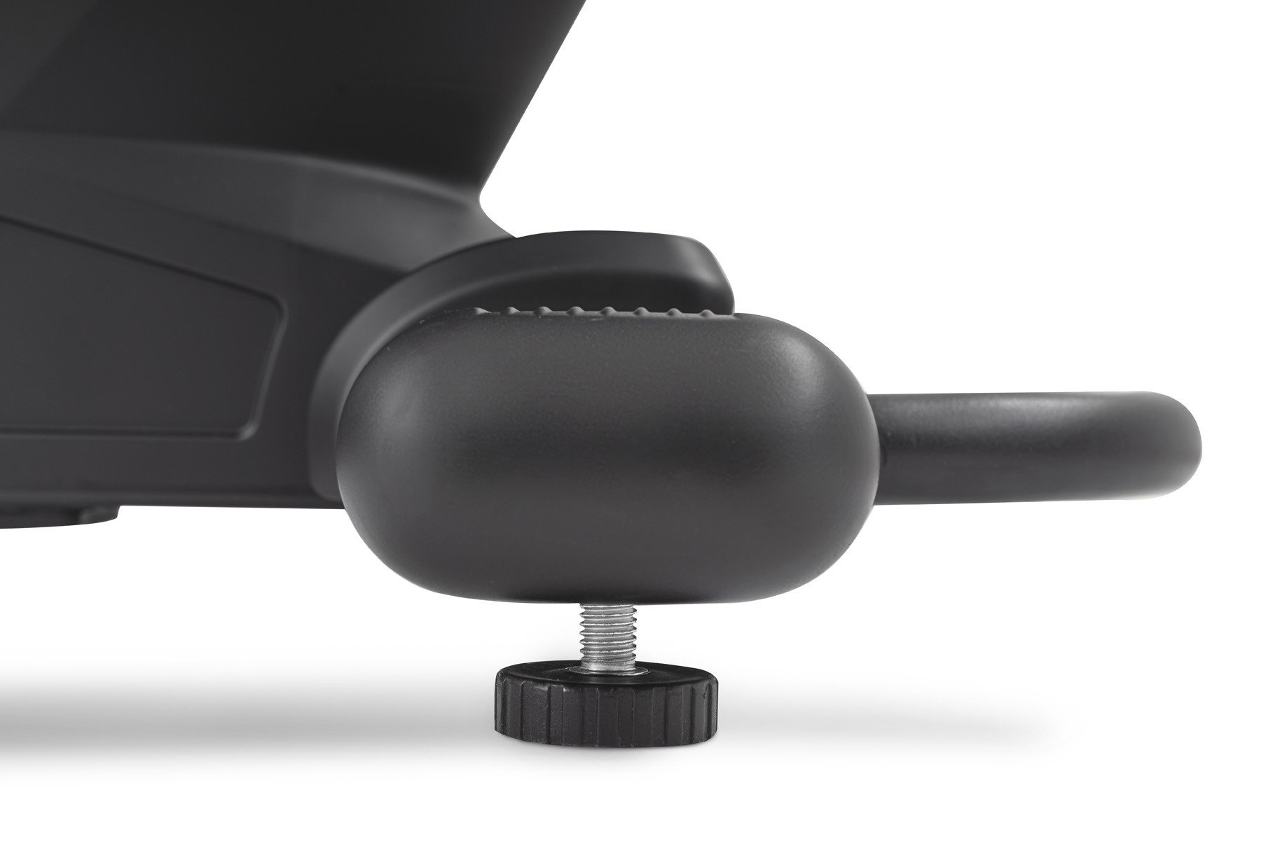 Odpowiednio ustawiony kąt nachylenia kierownicy – dopasowany do Twojego wzrostu i stylu jazdy sprawi, że trening będzie jeszcze bardziej komfortowy. Ponadto, zapewni Twoim dłoniom i nadgarstkom optymalną pozycję, przez co nie będą one narażone na ryzyko nieprzyjemnego drętwienia podczas jazdy. Kąt nachylenia kierownicy ustawisz z łatwością za pomocą regulatora, znajdującego się pod komputerem treningowym.