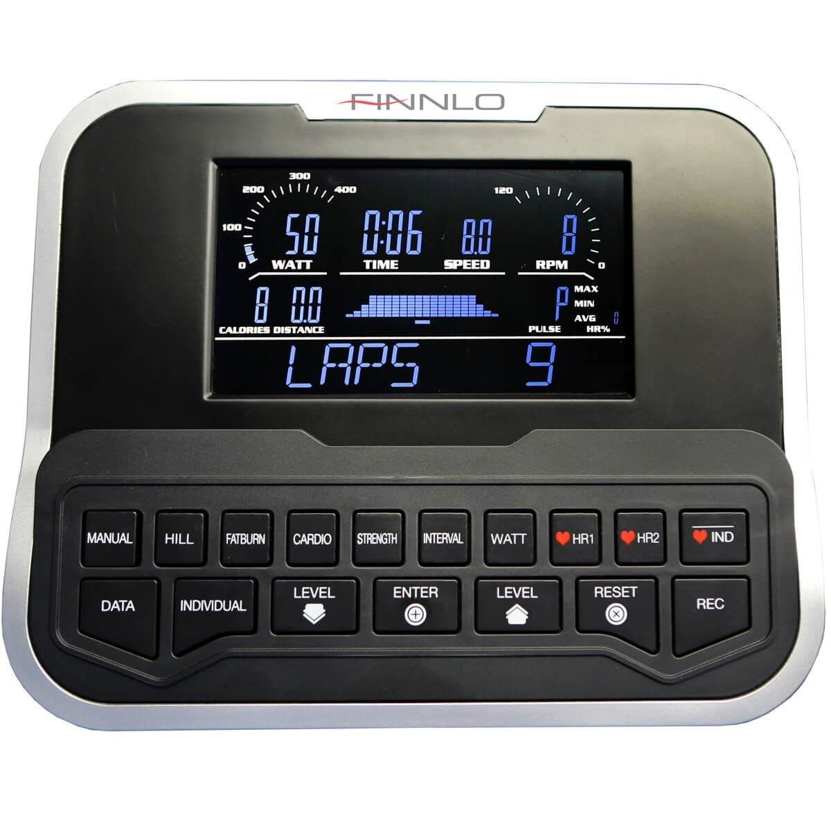Niezależne od ilości obrotów sterowanie obciążeniem odbywa się w zakresie od 20 do 400 watów (zgodnie z normą DIN EN 957). Inne funkcje premium: pomiar tętna spoczynkowego z oceną kondycji i przechowywanie 30 danych treningowych. Pomiar tętna odbywa się za pomocą zintegrowanych sensorów dotykowych lub opcjonalnie dostępnego pasa telemetrycznego. Przejrzysty wyświetlacz pokazuje następujące parametry: dystans, czas, prędkość, liczba obrotów, kalorie, tętno, moc i rundę treningową o długości 400 m.