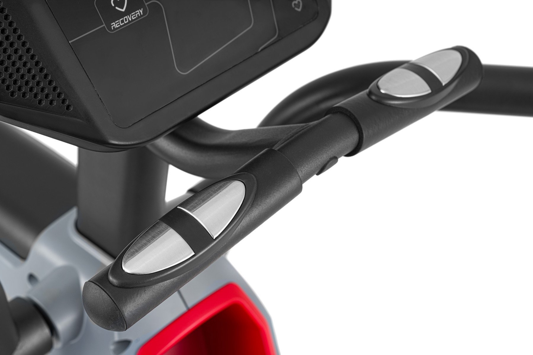 Komputerek oferuje duży wybór programów treningowych oraz umożliwia kontrolę parametrów: czas, prędkość, dystans, kalorie, tętno. Ponadto, dzięki funkcji Recovery, zmierzysz wydolność organizmu, Body Fat określi procent tkanki tłuszczowej oraz obliczy wskaźnik BMI, a dotykowe sensory pozwolą Ci szybko zmierzyć puls. Dzięki podkładce na urządzenie mobilne, podczas treningu możesz oglądać ulubione filmy lub seriale.