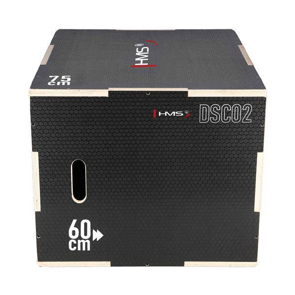DSC02 HMS to drewniana skrzynia, przeznaczona do treningu. Dzięki przewróceniu skrzyni na różne boki, możemy uzyskać trzy wysokości i dostosować je, do poziomu zaawansowania osoby trenującej. Materiał skrzyni, to drewniane sklejki, które tworzą puzzlowe zakładki, gwarantując stabilność i trwałość konstrukcji. Dodatkowo, ścianki pokryte są specjalną powłoką, która zabezpiecza przed ślizganiem się obuwia, w trakcie ćwiczeń. Kolejną zaletą powłoki jest to, że po skończonym treningu, bardzo łatwo można usunąć z niej zabrudzenia. Krawędzie skrzyni zostały zeszlifowane, a środek wzmocniony, dzięki czemu trening jest bezpieczny. Dwa wycięte otwory, ułatwiają przenoszenie skrzyni.
