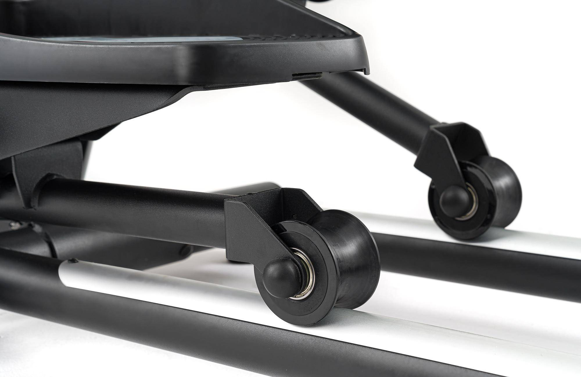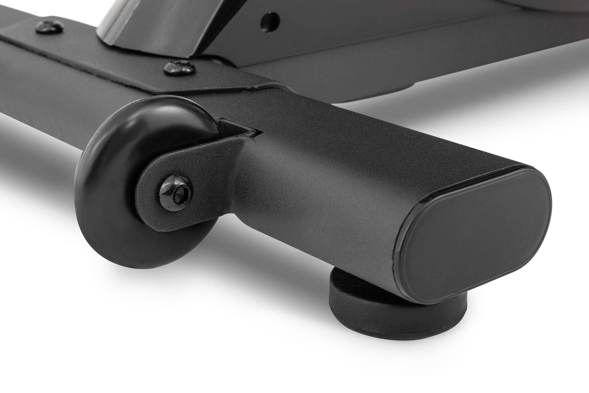 Obawiasz się, że Twój salon po zakończonym treningu będzie przypominał siłownię? Dzięki funkcjonalnym rolkom transportowym , wbudowanym w przedni stabilizator i uchwytowi znajdującemu się z tyłu, łatwo przesuniesz sprzęt w wybrane miejsce. Dodatkowo w stabilizatorach wbudowane są stopki poziomujące, niwelują minimalne nierówności podłoża.