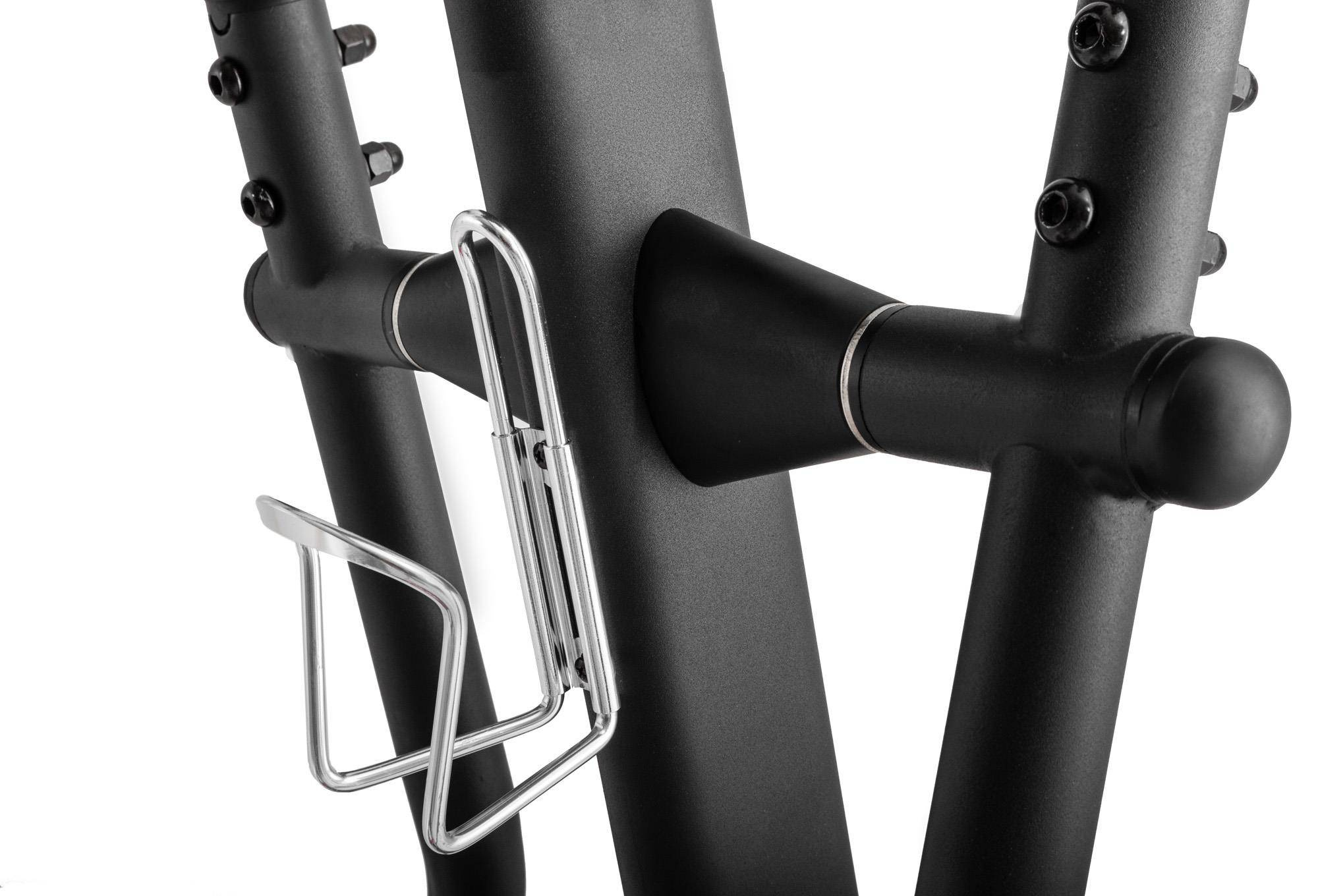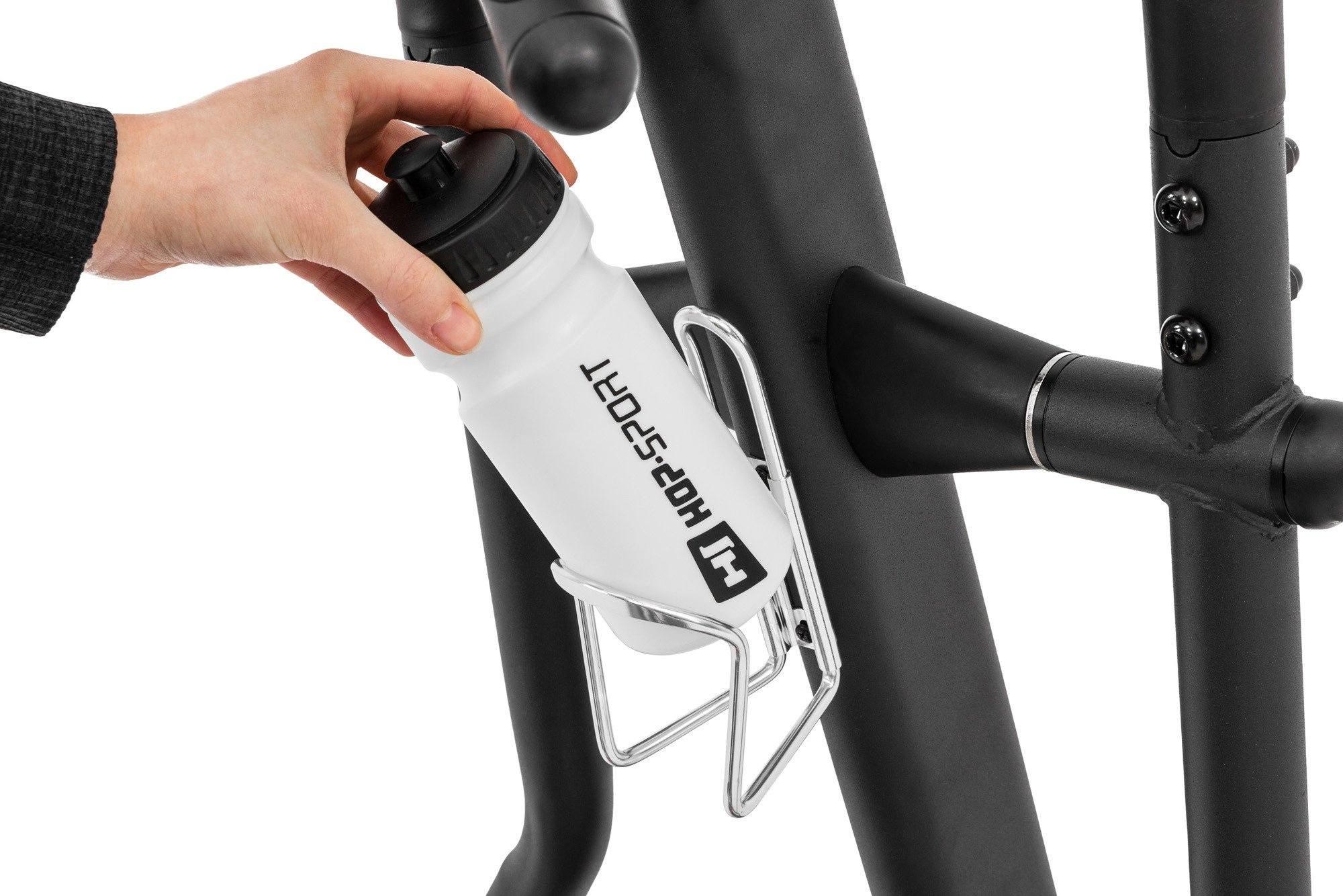 Przy długotrwałych i intensywnych treningach nie zapominaj o nawodnieniu! Na przedniej ramie trenażera, pod komputerem, znajduje się uchwyt na bidon - nie musisz przerywać treningu by sięgnąć po napój izotoniczny lub wodę. Brak bidonu w zestawie.