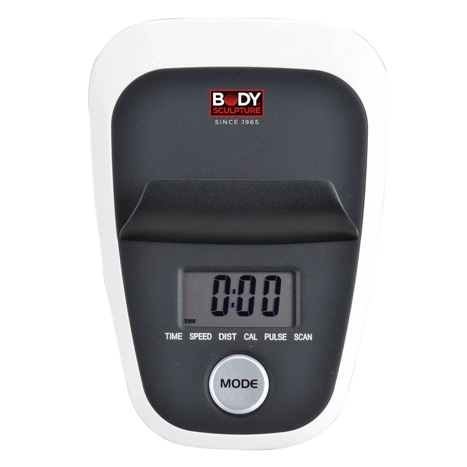 Stabilna konstrukcja urządzenia gwarantuje bezpieczeństwo i komfort ćwiczeń. Szerokie antypoślizgowe płozy sprawiają, że nogi nie ślizgają się w trakcie treningu, a ruch ciała jest naturalny i swobodny. Dodatkowym atutem orbitreka jest ręcznie sterowany system oporu. Zapewnia on możliwość płynnego stopniowania poziomu trudności ćwiczeń. Możesz ustawić opór zgodnie z założeniem treningu, a potem zmieniać go w trakcie, bez potrzeby zatrzymywania się. Na uchwytach znajdują się sensory pomiaru pulsu. Dzięki nim, możesz wykonać bardziej efektywny trening z wykorzystaniem stref tętna. Należy pamiętać, że pomiar pulsu za pomocą czujników umieszczonych w produkcie podaje wyniki przybliżone (orientacyjne). Sprzęt nie jest produktem medycznym. Wielofunkcyjny komputer z wyświetlaczem LCD pokazuje dane dotyczące prędkości, czasu, kalorii, dystansu i pulsu. Gwarantuje to możliwość śledzenia swoich postępów na bieżąco.