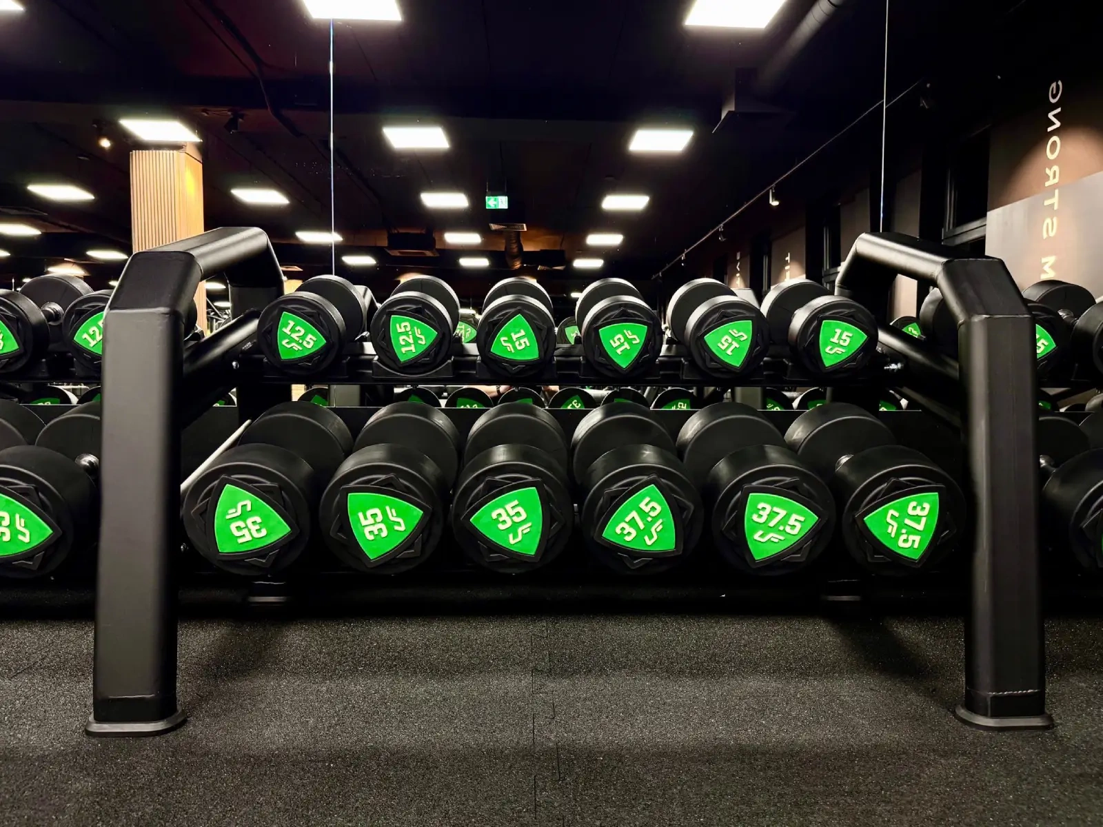 Stojak składa się z segmentów, które możesz łączyć w dowolną długość. Podstawowy element ma 136 cm długości, waży 82 kg i mieści się na nim 10 hantli.