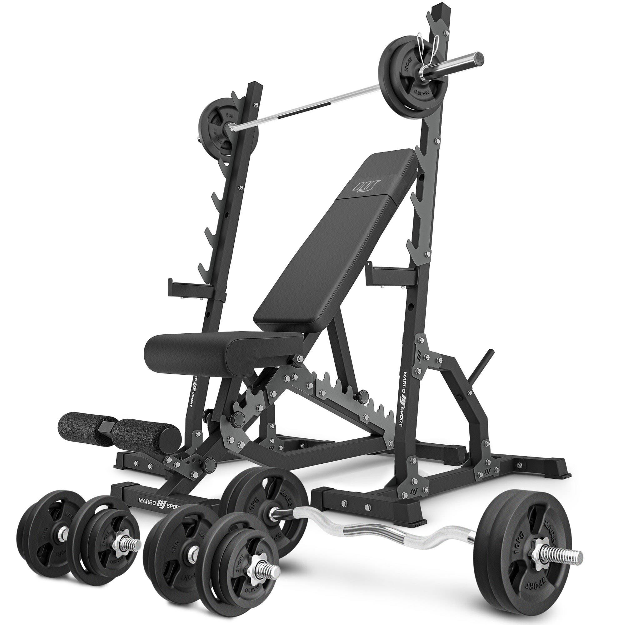 Zestaw MS24_2.0_113KG | Ławka dwustronna + wielopoziomowe stojaki (2 sztuki) + zestaw gryfów i obciążeń 113 kg - Marbo Sport
