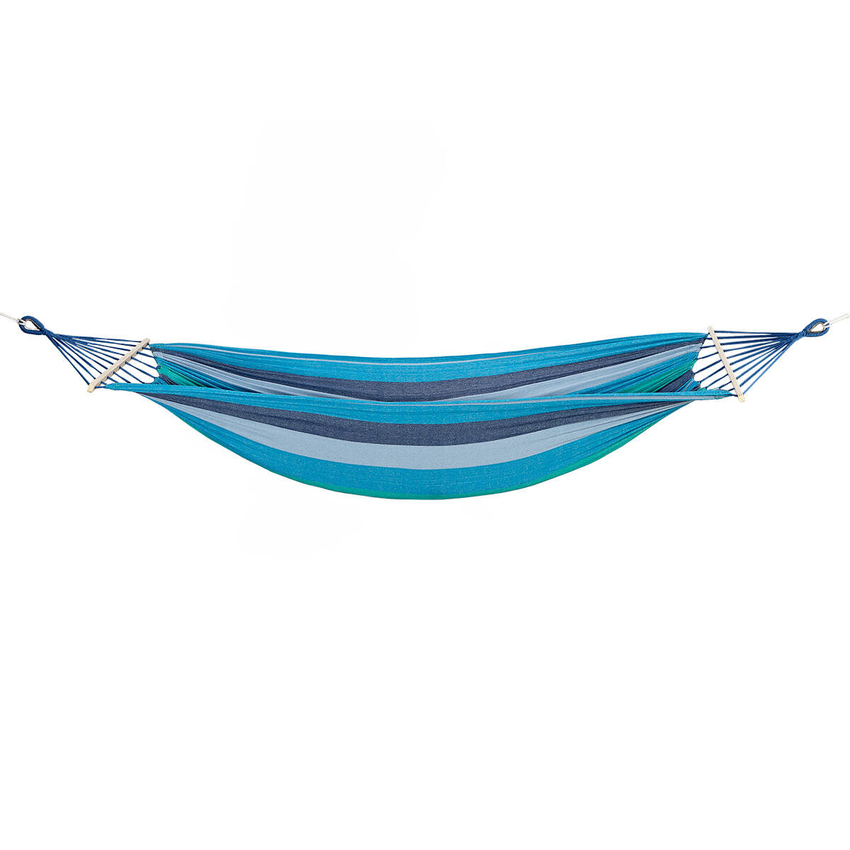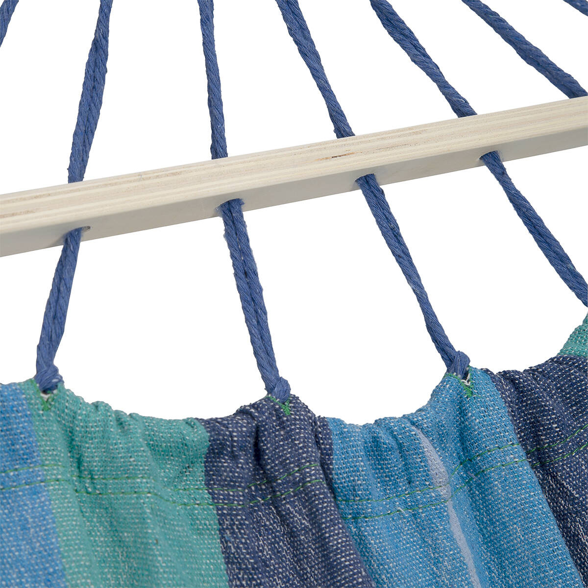 Hamak niebiesko-ciemnoniebieski NC9004 z belką drewnianą 70 cm i metalowym uchwytem - Nils Camp