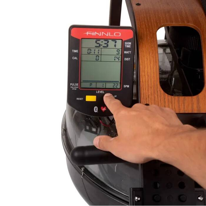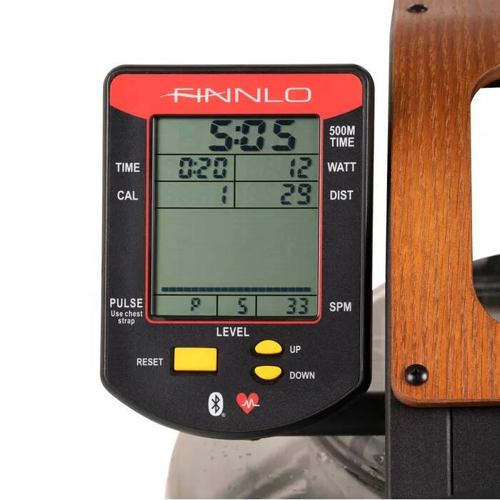 Główne zalety wioślarza wodnego FINNLO AQUON WATER FLOW BT :- Wyjątkowy design z dodatkami z drewna