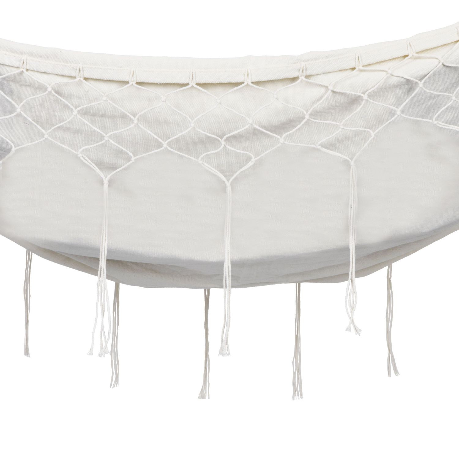 Dodatkowo ozdobne frędzle, które zostały umieszczone po obu stronach hamaka nadają mu niepowtarzalnego charakteru. Wykonany został z przewiewnego, mocnego materiału, zapewniającego wytrzymałość i odporność na przetarcia.