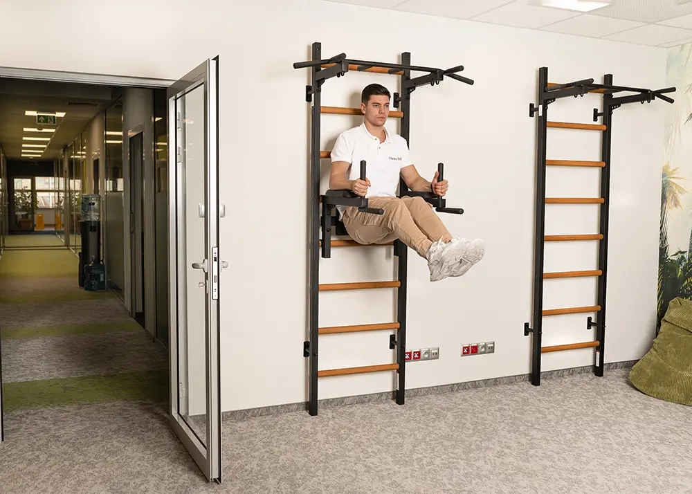 Poręcz do ćwiczeń DB1B ma podłokietniki i podparcie pod plecy z integralnej pianki poliuretanowej. To gwarantuje wytrzymałość, łatwość pielęgnacji i nowoczesny wygląd. Każdy z dodatkowych elementów może zostać dostosowany do wysokości osoby ćwiczącej albo zdjęty w razie potrzeby.