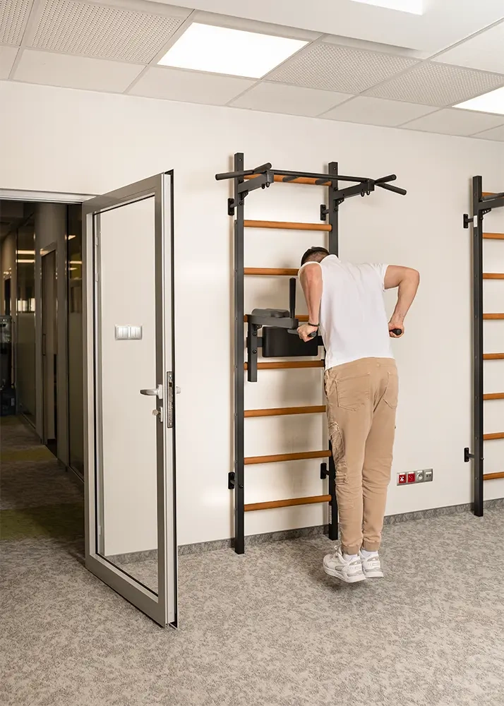 Drabinka gimnastyczna BenchK 222B to połączenie drabinki BenchK 200B z dodatkowym osprzętem w postaci: