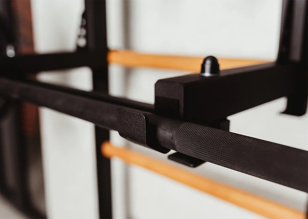Drążek PB3B ma haki z filcowym podkładem co pozwala regulować jego wysokość lub zmieniać pozycję. Do regulacji drążka potrzebna jest jedna osoba dorosła. Po jego obróceniu można wykorzystać go jako uchwyt pod sztangę. Maksymalna waga sztangi z obciążeniem wynosi 200 kg.