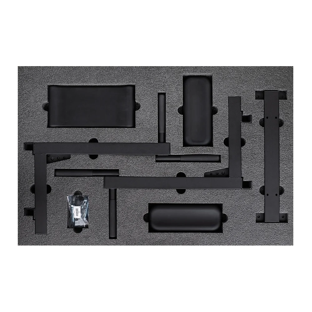 Poręcz do ćwiczeń DB1B ma podłokietniki i podkład pod plecy z integralnej pianki poliuretanowej. To gwarantuje wytrzymałość, łatwość pielęgnacji i nowoczesny wygląd. Każdy z dodatkowych elementów może zostać dostosowany do wysokości osoby ćwiczącej albo usunięty w razie potrzeby.
