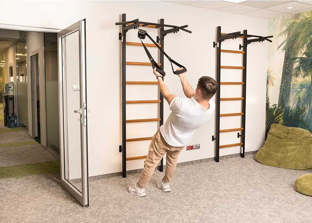 REGULACJA ZA POMOCĄ PRZYCISKU: Najszybsza i najłatwiejsza regulacja długości pasków spośród wszystkich modeli do treningu w podwieszeniu. Paski dostosowują się jednocześnie do dowolnej długości za naciśnięciem przycisku.
